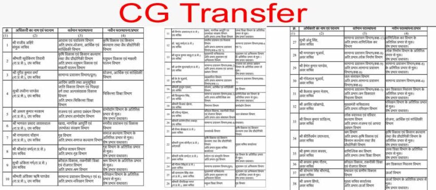 छत्तीसगढ़ में बड़ा प्रशासनिक फेरबदल: 38 अधिकारियों का तबादला