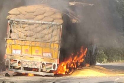 चलते ट्रक में लगी भीषण आग: साल्हेवारा घाटी में दमकल की तेजी से टला बड़ा हादसा