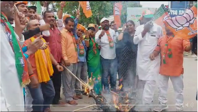नालंदा। पटना में शिक्षकों की बहाली, भ्रष्टाचार ,10 लाख लोगों को नौकरी देने पर भारतीय जनता पार्टी के विधानसभा मार्च के दौरान लाठीचार्ज में हुई। जिसमे बीजेपी कार्यकर्ता की मौत के बाद भारतीय जनता पार्टी एक्शन मोड में दिख रही है। इसी के चलते आज नालंदा जिले में भारतीय जनता पार्टी के कार्यकर्ताओं ने काला दिवस मनाते हुए मुख्यमंत्री और डिप्टी सीएम का अस्पताल चौराहा पर पुतला फूंका।