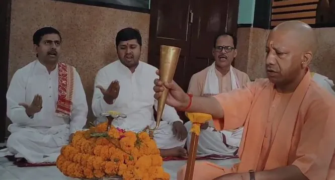 गोरखनाथ मंदिर स्थित पीठाधीश्वर आवास के प्रथम तल पर शक्तिपीठ में सीएम योगी ने देवाधिदेव महादेव को विल्व पत्र, कमल पुष्प, दूर्वा, अनेकानेक पूजन सामग्री अर्पित करने कर बाद दूध एवं फलों के रस से रुद्राभिषेक किया। मठ के विद्वत पुरोहितगण ने शुक्ल यजुर्वेद संहिता के रुद्राष्टाध्यायी के महामंत्रों द्वारा रुद्राभिषेक का अनुष्ठान पूर्ण कराया। रुद्राभिषेक के बाद मुख्यमंत्री वैदिक मंत्रोच्चार के बीच हवन व आरती की। विधि विधान से पूर्ण हुए अनुष्ठान के उपरांत उन्होंने प्रदेशवासियों के आरोग्यमय, सुखमय, समृद्धमय व शांतिमय जीवन की मंगलकामना की।