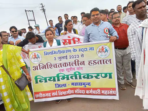 छत्तीसगढ़ प्रदेश मे करीब 45 हजार संविदा कर्मचारी नियमतीकरण की मांगो को लेकर बीते 3 जुलाई से अनिश्चितकालीन हड़ताल पर है। संविदा कर्मी मुख्यमंत्री भूपेश सरकार से लगातार नियमतीकरण की मांग करते चले आ रहे है। सुनवाई न होने से नाराज प्रदेश के संविदा कर्मियों ने सरकार के खिलाफ मोर्चा खोल दिया है। प्रदेश के करीब 45 हजार संविदा कर्मियों के हड़ताल पर जानें के कारण इसका असर शासकीय विभाग में दिख रहा है। अधिकांश विभाग में संविदा पद पर भर्ती कर्मचारियों में डाडा एंट्री आपरेटर , लिपिक , टैक्निशयन , द्वितीय तृतीय वर्ग के कर्मचारी व ऑफिस स्टाफ जैसे पदों पर कार्यरत है। इनके हड़ताल पर जाने के कारण शासकीय विभागों में परेशानी बढ़ गई है।