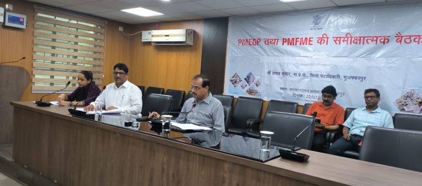 मुजफ्फरपुर : पी.एम.ई.जी.पी. तथा पी.एम.एफ.एम.ई. के अन्तर्गत प्राप्त एवं निष्पादित आवेदनों की ब्रांचवार समीक्षा की गयी। सभी बैंकों के काॅर्डिनेटर एवं ब्रांच मैनेजेर को दो पालियों में आवेदन सृजन को लेकर समीक्षा हुई। जिला पदाधिकारी ने बैंको को उद्यमियों द्वारा दिये गये आवेदन पर संवेदनशिलता एवं उद्यमिता विकास को दृष्टिगत करते हुए कार्य करने का निदेश दिया गया।