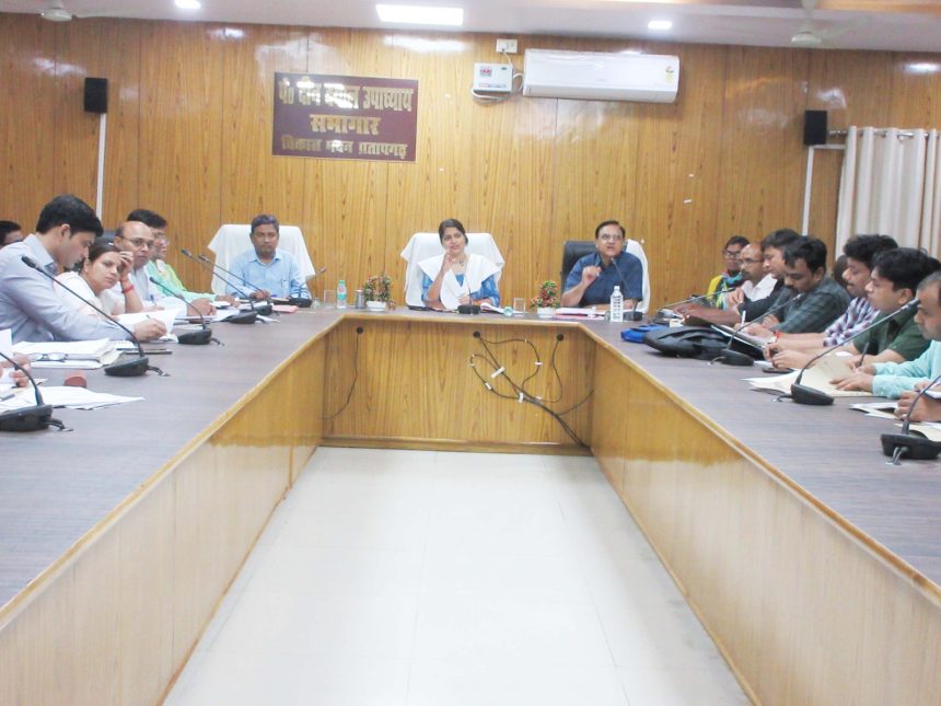 प्रतापगढ़: मुख्य विकास अधिकारी ईशा प्रिया ने कल सायंकाल विकास भवन के सभागार में जिला पोषण समिति, जिला स्वास्थ्य समिति (शासी निकाय) तथा विशेष संचारी रोग नियंत्रण अभियान के सम्बन्ध में अधिकारियों के साथ बैठक की। जिला पोषण समिति की बैठक में सीडीओ ने बाल विकास परियोजना अधिकारियों एवं मुख्य सेविकाओं को निर्देशित किया कि जब क्षेत्र में जाये तो बच्चों के हेल्थ से सम्बन्धित सामग्री अवश्य लेकर जाये।
