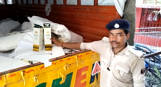 उत्पाद थानाध्यक्ष भी.के ठाकुर ने बताया कि सूचना मिली थी कि हरियाणा से पत्तल और कटोरी बनाने वाले सामान के बीच छिपाकर भारी मात्रा में अंग्रेजी शराब को लाया गया है । इसी सूचना पर छापेमारी की गई जहां करीब 25 पैकेट में 5 लाख के शराब को बरामद किया गया है । मौके से चालक और काम करने वाले लोगों को गिरफ्तार कर पूछताछ की जा रही है । हाल के दिनों में सरकारी संस्थानों में खाली शराब की बोतलें और रैपर मिलने से उत्पाद विभाग की टीम पर कार्रवाई की नाम पर सवालिया निशान लग रहा था ।