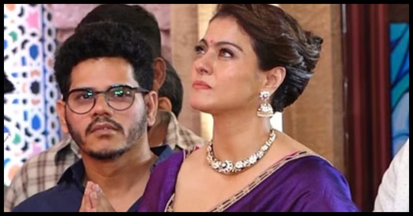बैंगनी साड़ी में काजोल का दिखा लुक