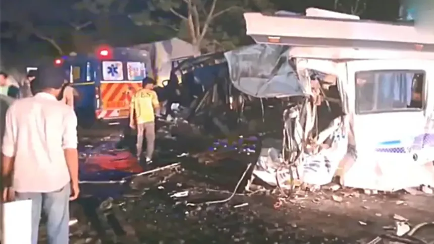 Ambala Road Accident: देश में सड़क हादसे थमने का नाम ही नहीं ले रहे है. हरियाणा के अंबाला में बीती रात एक भीषण सड़क हादसा हो गया. यूपी के बुलंदशहर से वैष्णो देवी दर्शन के लिए जा रहे एक ही परिवार से भरी ट्रैवलर की ट्रॉले में भिड़त हो गई. ये हादसा दे रात करीब दो बजे के आस पास हुआ. इस दुर्घटना में 7 लोगों की मौत हो घई और 20 से भी अधिक लोगों के घायल होने की खबर सामने आई है. मरने वालों में एक छह माह की बच्ची भी शामिल है.
