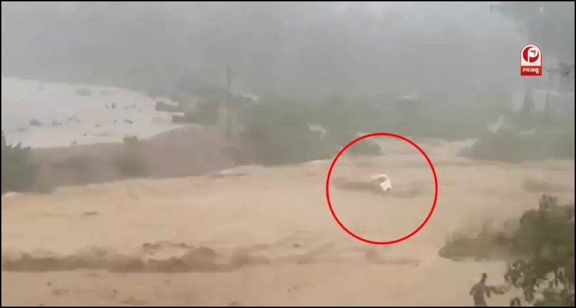अचानक आई बाढ़ में बह गई गाड़ी