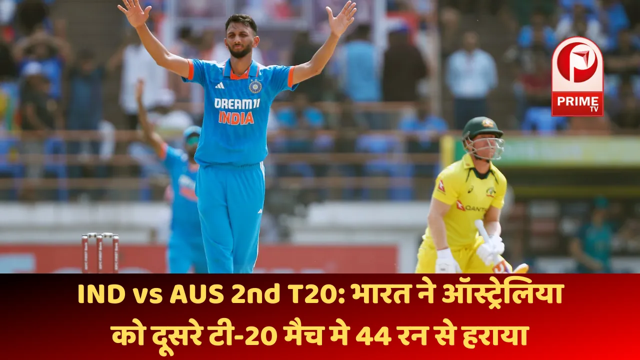IND vs AUS 2nd T20: भारत बनाम ऑस्ट्रेलिया के बीच पांच टी-20 मैचो की सीरीज भारत की अगुवाई में खेला जा रहा है। पांचो टी-20 मैचो की सीरीज की मेजबानी भारत को सौपीं गई है। टी-20 मैचो की सीरीज में सूर्यकुमार यादव को कप्तान और रितुराज गायकवाड़ को उपकप्तान बनाया गया है। अगले आखिरी दो मैचो में श्रेयस अय्यर को उपकप्तान बनाया गया है। 26 नवंबर को भारत और ऑस्ट्रेलिया के बीच तिरुवनंतपुरम के ग्रीनफील्ड इंटरनेशनल क्रिकेट मैदान खेले गए दूसरे टी-20 मैच में भारत ने ऑस्ट्रेलिया को 44 रनो से हरा दिया है। भारत ने ऑस्ट्रेलिया के खिलाफ 2-0 से बढ़त बना ली है। भारतीय टीम टॉस हारकर ऑस्ट्रेलिया के खिलाफ पहले बल्लेबाजी करते हुए निर्धारित 20 ओवर में 235 रनो का विशाल स्कोर बनाया। जवाब में लक्ष्य का पीछा करने कंगारुओं की टीम 20 ओवर में 191 रन बनाकर आलाउट हो गई।