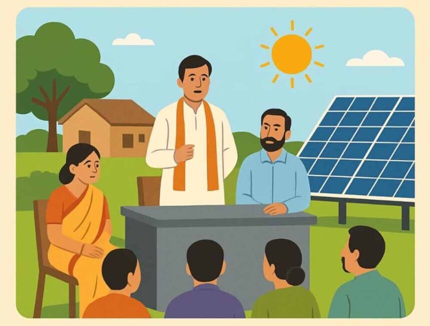इस प्रक्रिया को प्रभावी बनाने के लिए प्रत्येक चयनित ग्राम में आदर्श ग्राम समिति गठित की जा रही है, जिसमें सरपंच, सचिव, जनप्रतिनिधि, आंगनबाड़ी कार्यकर्ता, शिक्षक, डॉक्टर, कृषि विस्तार अधिकारी तथा संबंधित शासकीय अधिकारी सदस्य के रूप में शामिल होंगे। यह समिति डोर-टू-डोर संपर्क कर ग्रामीणों को सौर ऊर्जा अपनाने के लिए प्रेरित करेगी। साथ ही पी.एम. कुसुम योजना, जल जीवन मिशन के सोलर डुअल पंप, सोलर हाईमास्ट, सोलर स्ट्रीट लाइट तथा अन्य नवीकरणीय ऊर्जा आधारित व्यवस्थाओं की जानकारी भी प्रदान करेगी।