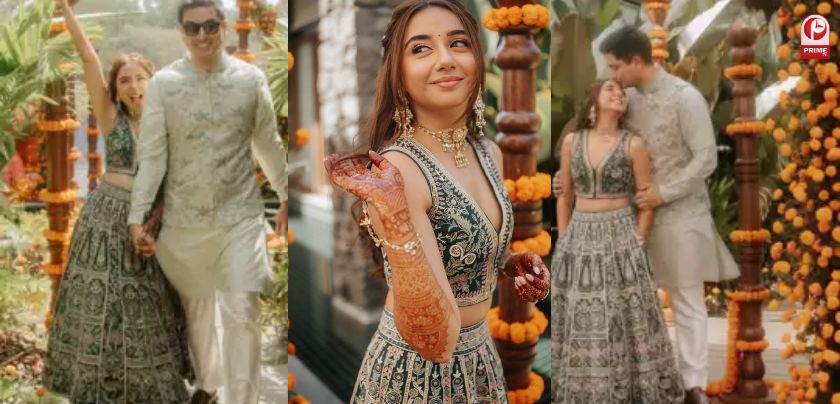 प्राजक्ता कोली (Prajakta Koli) और वृषांक खनाल (Vrishank Khanal) की शादी की तैयारी जोर-शोर से चल रही है, और हाल ही में इनकी मेहंदी सेरेमनी की तस्वीरें सोशल मीडिया पर वायरल हो रही हैं। प्राजक्ता ने इस खास मौके पर हरे रंग के लहंगे में सबका ध्यान अपनी ओर खींच लिया। इस लहंगे को प्रसिद्ध डिजाइनर अनीता डोंगरे ने डिजाइन किया है, और इसे SEWA के कारीगरों द्वारा हाथ से कढ़ाई करके तैयार किया गया है।