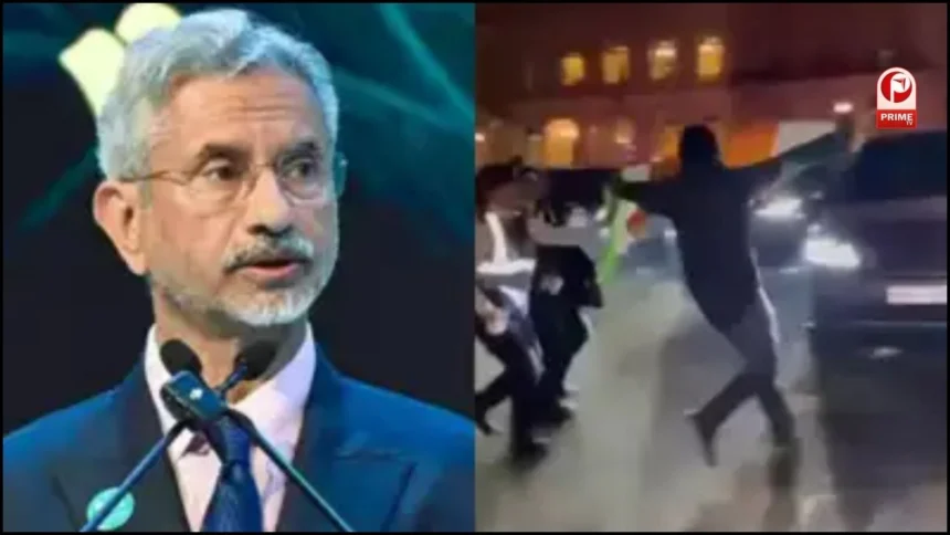S Jaishankar in London:भारत के विदेश मंत्री एस जयशंकर पर लंदन के चैथम हाउस में एक कार्यक्रम के बाद हमला करने की कोशिश की गई। यह घटना सोशल मीडिया पर वायरल हो गई है, जिसमें खालिस्तान समर्थक देश विरोधी नारेबाजी कर रहे थे और एक व्यक्ति ने विदेश मंत्री की कार के सामने आकर तिरंगे का अपमान किया। सुरक्षाकर्मियों ने तुरंत हस्तक्षेप किया और उस व्यक्ति को पकड़कर गाड़ी से दूर कर दिया।