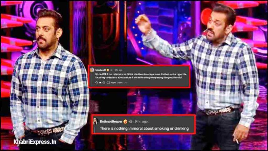 दर्शकों ने सलमान खान की क्लास लगा दी है. इन दिनों सोशल मीडिया पर एक्टर का एक फोटो काफी तेजी से वायरल हो रहा है. जिसमें एक्टर सलमान खान को सिगरेट पीते हुए दिखाया जा रहा है. ऐसा बताया जा रहा है कि सलमान खान होस्टिंग के दौरान सिगरेट पी रहे थे. लेकिन शो की एडिटिंग टीम की गलती की वजह से ये प्रसारित हो गया. अब ऐसे में सलमान खान को लेकर ट्विटर पर खूब बहसबाजी हुई. वहीं कुछ लोगों ने सलमान पर कई सवाल खड़े किए कि वो शो में अच्छाई की क्लास देते हैं. और वो खुद ऐसा कैसे कर सकते हैं. सलमान खान काफी बुरी तरह से ट्रोल हो रहे हैं.