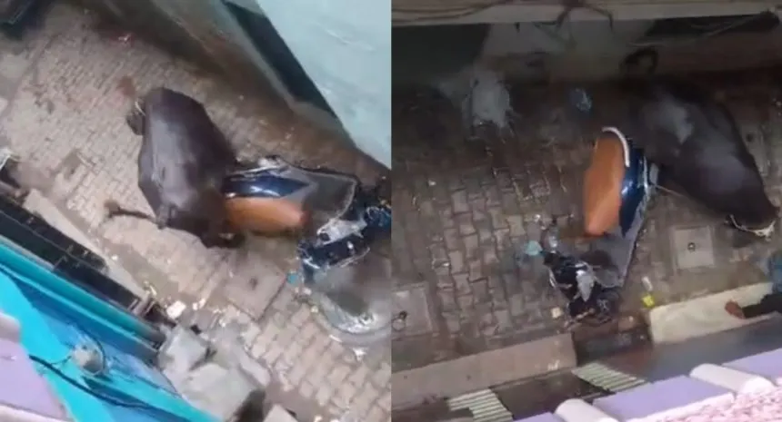 दरअसल, बकरीद के अन्तिम दिन के मौके पर कुर्बानी के लिए लाए गए भैंसों ने जैसे ही कसाई के हाथ में छुरा देखा। वैसे ही भैंसे ने इधर-उधर भागना शुरू कर दिया। इससे वहां पर मौजूद लोगों में अफरा तफरी मच गई। भैसे ने उत्पात मचाते हुए कसाई पर हमला बोल दिया। इसके बाद गुस्साये भैंसे ने पास खड़ी स्कूटी को घसीटते हुए कुछ दूर तक ले गया।