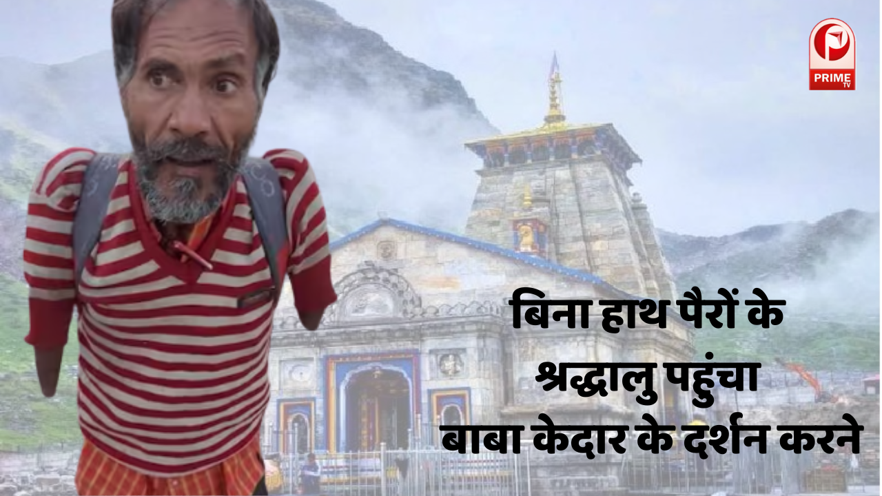 बिना हाथ पैरों के श्रद्धालु पहुंचा बाबा केदार के दर्शन करने