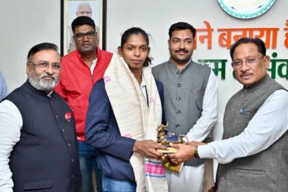 рд╡рд┐рд╢реНрд╡ рдХрдк рд╕реНрдЯрд╛рд░ рд╕рдВрдЬреВ рджреЗрд╡реА рдХреЛ CM рд╕рд╛рдп рдХреА рдмрдзрд╛рдИтАФрд░рд╛рдпрдкреБрд░ рдореЗрдВ рдХрд┐рдпрд╛ рд╕рдореНрдорд╛рдирд┐рдд