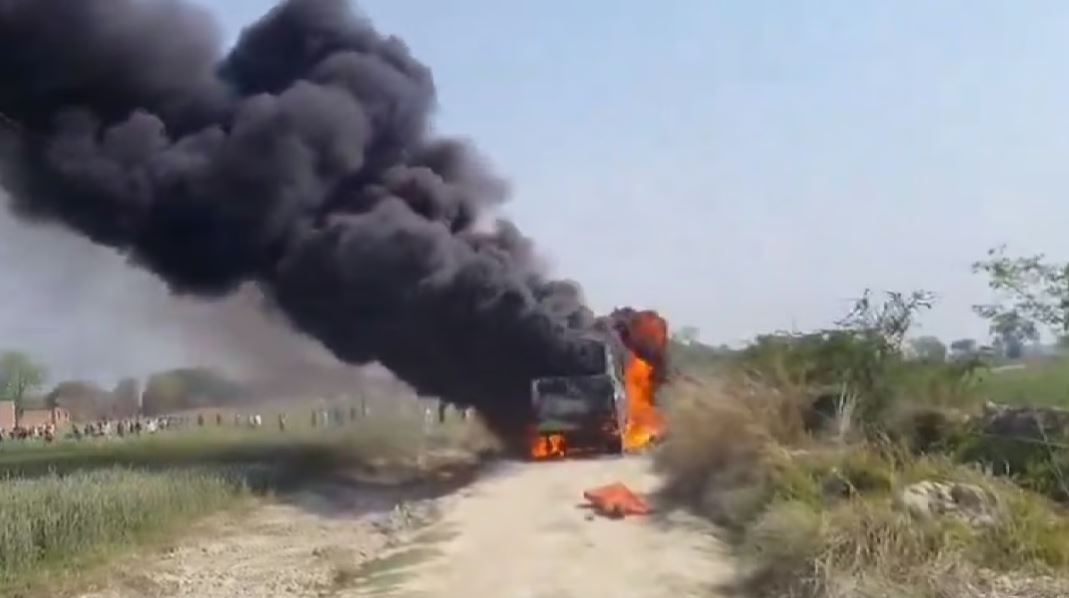 Ghazipur में दर्दनाक हादसा,हाईटेंशन लाइन की चपेट में आने से यात्रियों से भरी बस में लगी भीषण आग