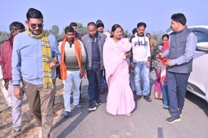 रायपुर: मंत्री लक्ष्मी राजवाड़े ने ओड़गी में सड़क और पुलिया निर्माण का औचक निरीक्षण किया