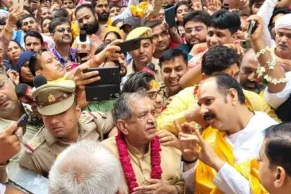 बरसाना पहुंचे कथावाचक प्रदीप मिश्रा,राधारानी के सामने हुए दंडवत, नाक रगड़कर मांगी माफी..