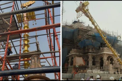 Ram Mandir News: राम मंदिर को मिली पूर्णता, मुख्य शिखर पर 42 फीट ऊंचे धर्म ध्वज दंड की स्थापना