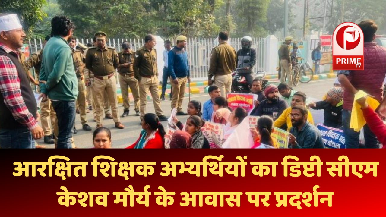 आरक्षित शिक्षक अभ्यर्थियों का डिप्टी सीएम केशव मौर्य के आवास पर प्रदर्शन