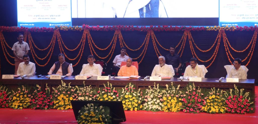 मुख्यमंत्री योगी आदित्यनाथ ने कहा कि डबल इंजन की सरकार ने आजादी के अमृत महोत्सव वर्ष में पूरे देश में हर जनपद और ब्लॉक स्तर पर अमृत सरोवर के माध्यम से जल संरक्षण की दिशा में कदम आगे बढ़ाए हैं, जिसमें उत्तर प्रदेश पहले स्थान पर रहा है। नमामि गंगे परियोजना के पहले गंगा की स्थिति कितनी खराब हो चुकी थी, ये सभी जानते हैं। वहीं 9 वर्षों में प्रधानमंत्री नरेंद्र मोदी के नेतृत्व में नमामि गंगे परियोजना के बाद आज इसमें व्यापक सुधार हुआ है, लेकिन अभी भी हमें इस दिशा में नये कदम उठाने होंगे क्योंकि ग्राउंड वाटर हो या सरफेस वाटर इसकी सुरक्षा करनी ही होगी।