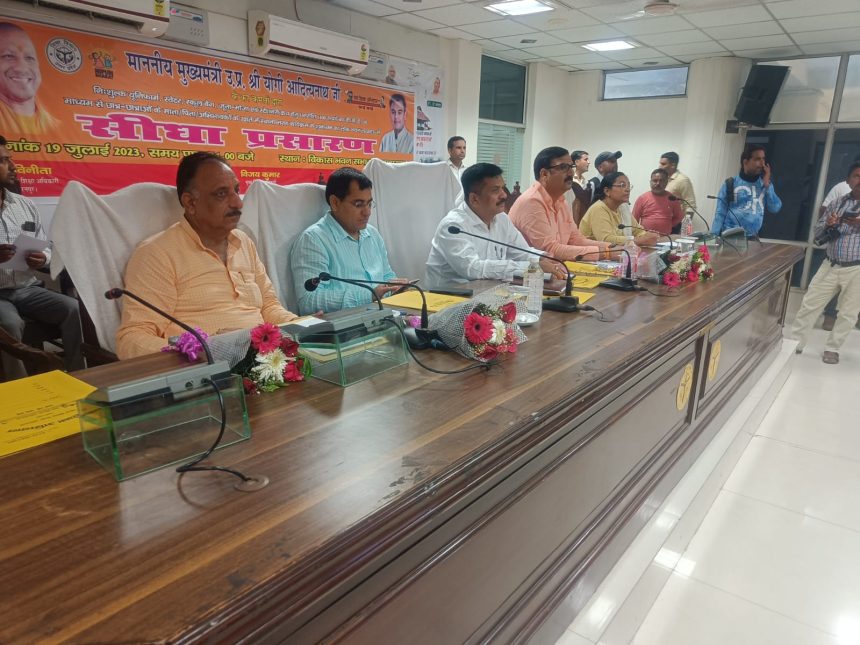 जनपद में विकासभवन सभागार में माननीय मुख्यमंत्री जी के कार्यक्रम का सजीव प्रसारण दिखाया गया। सजीव प्रसारण के दौरान नगर विधायक श्री राजीव गुम्बर, नकुड विधायक श्री मुकेश चौधरी, जिलाधिकारी डॉ0 दिनेश चन्द्र, मुख्य विकास अधिकारी श्री विजय कुमार, जिला बेसिक शिक्षा अधिकारी डॉ0 विनीता, जिला समन्वयक डॉ० कृपाल मलिक एवं समस्त विकास क्षेत्रों के शिक्षक संकुल के साथ – साथ कतिपय परिषदीय विद्यालयों के छात्र – छात्राऐं भी उपस्थित रही।