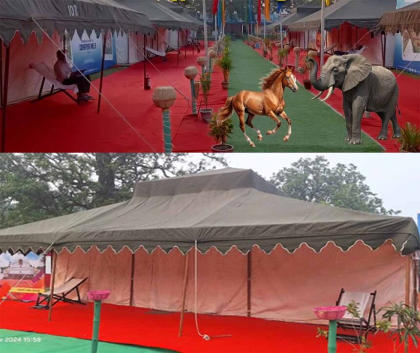 देशी-विदेशी पर्यटकों के लिए मेला स्थल के समीप ही अत्याधुनिक लग्जरी टेंट का निर्माण किया गया है। इन टेंटों का निर्माण दो श्रेणी में किया गया है। इनमें मुहैया कराई जाने वाली सुविधाओं के आधार पर इन लग्जरी टेंट को मिनी दरबारी और राजवाड़ी का नाम दिया गया है। इनका किराया देसी और विदेशी पर्यटकों के लिए अलग-अलग निर्धारित है। दोनों तरह के टेंट का किराया एक समान ही है। देशी पर्यटकों के लिए यह किराया 3 हजार रुपये और विदेशी पर्यटकों के लिए 5 हजार रुपये प्रति रात निर्धारित है। कपल के लिए यह किराया 6 हजार रुपये निर्धारित है। इन लग्जरी टेंट्स में एसी के अलावा अटैच बाथरूम, 24 घंटे बिजली-पानी समेत अन्य सुविधाएं बहाल की गई हैं। सुरक्षा के पुख्ता इंतजाम किए गए हैं।