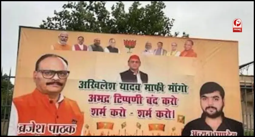 UP Politics: लखनऊ में समाजवादी पार्टी (सपा) सुप्रीमो अखिलेश यादव और बीजेपी के डिप्टी सीएम ब्रजेश पाठक के बीच जुबानी थमने का नाम नहीं ले रही है. इसी कड़ी में, बीजेपी के प्रदेश कार्यालय के बाहर एक बार फिर अखिलेश यादव के खिलाफ होर्डिंग्स लगाई गई हैं। इन होर्डिंग्स में ब्रजेश पाठक को ब्राह्मण समाज का नेता बताया गया है और अखिलेश यादव से माफी मांगने की मांग की गई है। यह पोस्टर वॉर अब सोशल मीडिया से होकर धरातल तक पहुंच गया है और सियासत में नया मोड़ ले लिया है।
