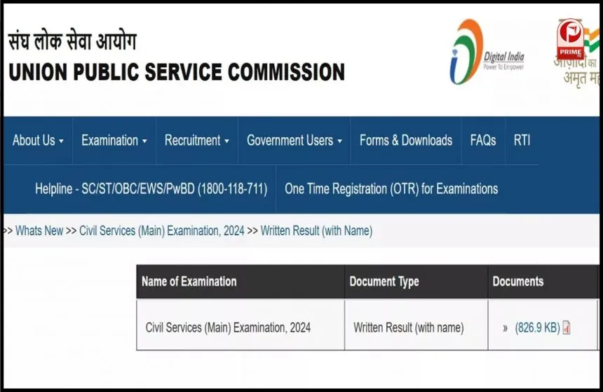 UPSC CSE Mains Result 2024:संघ लोक सेवा आयोग (यूपीएससी) ने सिविल सेवा मुख्य परीक्षा 2024 का परिणाम घोषित कर दिया है। उम्मीदवार अब यूपीएससी की आधिकारिक वेबसाइट या इस पृष्ठ पर दिए गए लिंक से पीडीएफ फॉर्मेट में रिजल्ट डाउनलोड कर सकते हैं। इस सूची में जिन अभ्यर्थियों का नाम और रोल नंबर है, उन्हें इंटरव्यू या पर्सनैलिटी टेस्ट के लिए योग्य माना जाएगा।