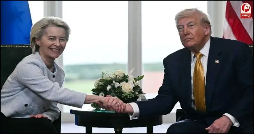 ब्रिटिश मीडिया रिपोर्टों के अनुसार यूरोपीय आयोग की अध्यक्ष उर्सुला वॉन डेर लेयेन ने रविवार (27 जुलाई) को स्थानीय समयानुसार स्कॉटलैंड के टर्नबेरी गोल्फ रिसॉर्ट में अमेरिकी राष्ट्रपति डोनाल्ड ट्रम्प से मुलाकात की। यह मुलाकात संयुक्त राज्य अमेरिका और यूरोपीय संघ के बीच संभावित व्यापार युद्ध के संदर्भ में हुई। इस बैठक में संयुक्त राज्य अमेरिका और यूरोपीय संघ एक नए व्यापार समझौते पर सहमत हुए। यह घोषणा की गई कि संयुक्त राज्य अमेरिका में आयातित सभी यूरोपीय उत्पादों पर 15 प्रतिशत का एकल टैरिफ़ लगाया जाएगा।