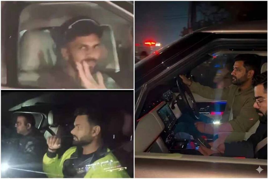 सूत्रों के मुताबिक बीते गुरुवार की रात को विराट कोहली और ऋषभ पंत, दलादली स्थित पूर्व भारतीय कप्तान महेंद्र सिंह धोनी के आवास पहुंचे। इस दौरान कोहली और पंत ने धोनी और उनके परिवार के साथ डिनर किया। बाद में धोनी खुद गाड़ी चलाकर विराट कोहली को बाहर छोड़ने आए। वहीं, इससे पहले धोनी के घर के बाहर जैसे ही कोहली और पंत की गाड़ियां पहुंचीं, वहां मौजूद फैंस उन्हें देखने उमड़ पड़े।